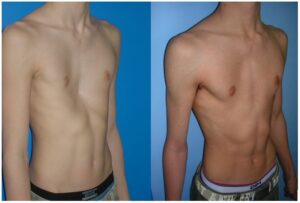 Il s’agit dans 95% des cas d’un problème esthétique exclusivement. Cette déformation est toujours bien supportée sur le plan thoracique. Parfois il y a un véritable retentissement psychologique avec des adolescents qui refusent de se mettre en maillot de bain ou aller à la plage.